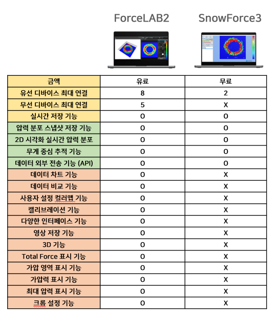 소프트웨어간 차이점은 아래 표를 참고 부탁드립니다.