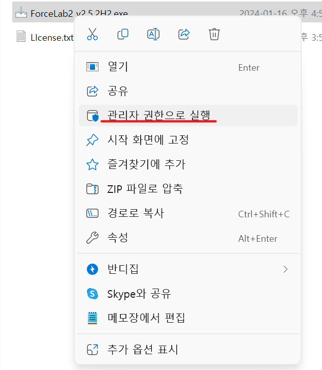 2. 소프트웨어 설치 파일을 관리자 권한으로 실행해 주세요.