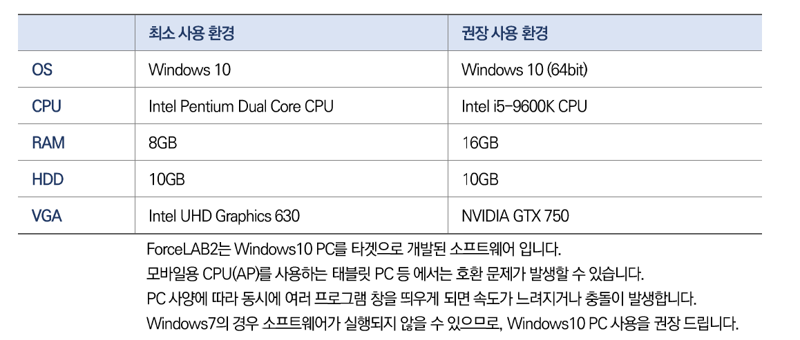 1. 소프트웨어 설치를 위한 사용 환경을 확인해주세요.