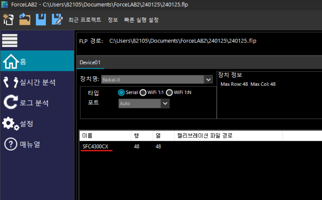 ※ 센서와 일치하는 INI가 없는 경우에는 당사로 연락 부탁드립니다.