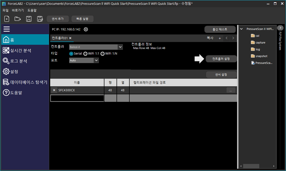 ForceLAB2 홈 ▶ 컨트롤러 설정 클릭